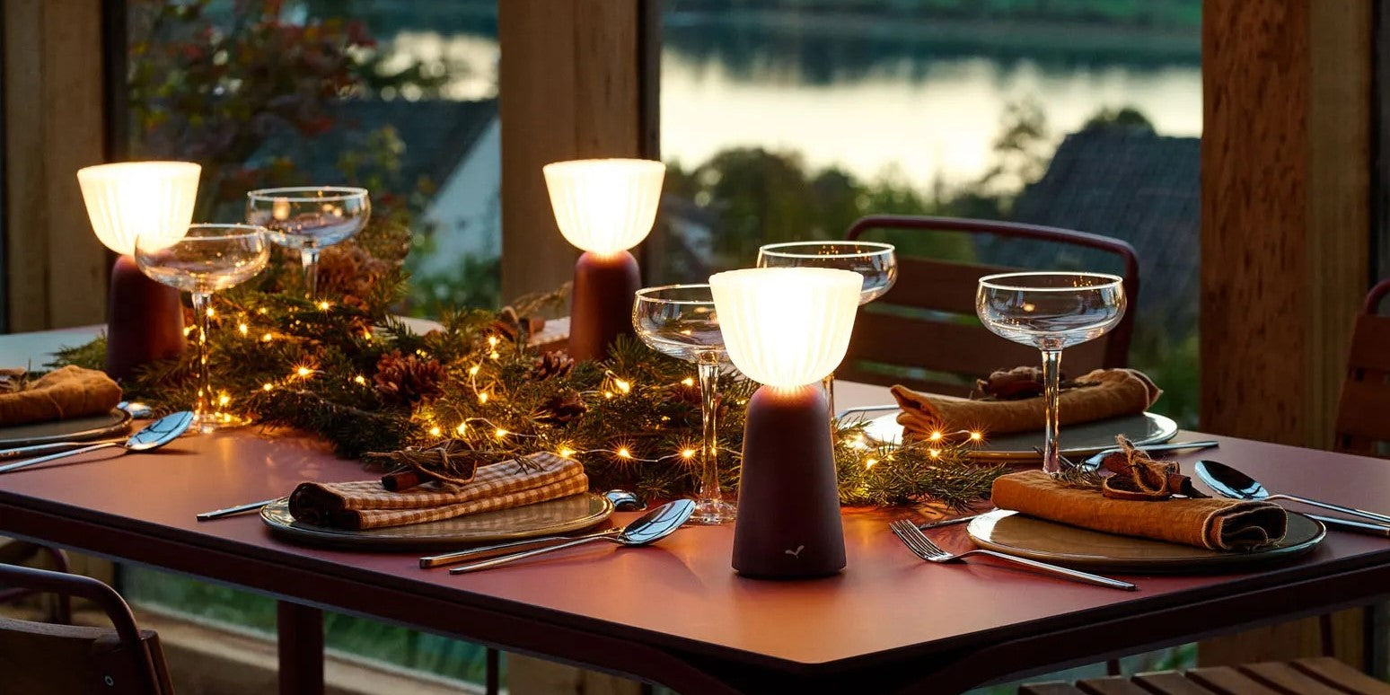 SWIING hingegen ist klein, chic und bringt eine besondere Atmosphäre auf den gedeckten Tisch oder den Bar-Tresen. Erhältlich in 4 wunderschönen Farben im 6er Paket inkl. passender Ladestation. Perfekt für Restaurants, Hotels und Events