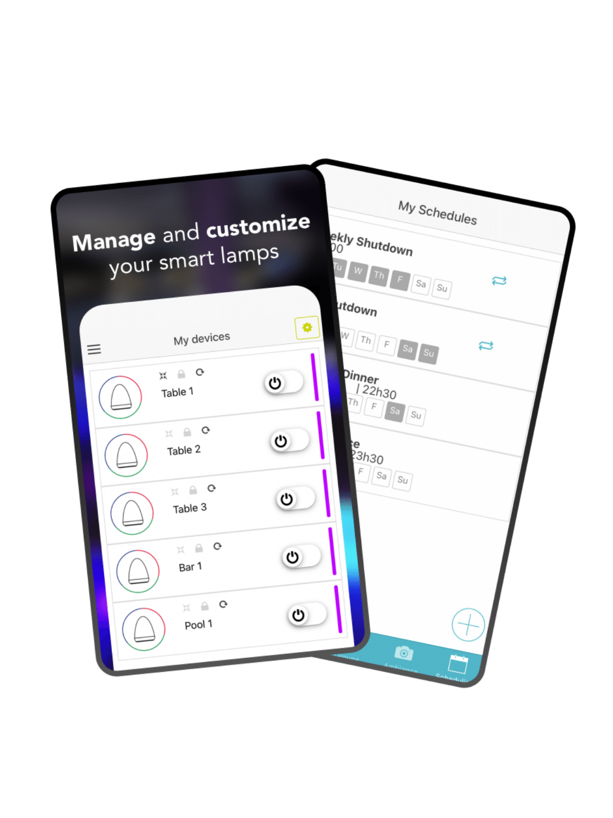 Thanks to its cutting-edge technology, developed in France and manufactured in its factory in Asia, SMART AND GREEN today offers an innovative lighting control solution: the Bluetooth SmartMesh®. This Bluetooth technology allows the lamps to communicate with each other and form a network of over 50 lamps over a distance of up to 1 km! No more annoying remote control required - now you can easily control your ambient lights and connected light bulbs from your smartphone or tablet using the SMART AND GREEN mobile app.