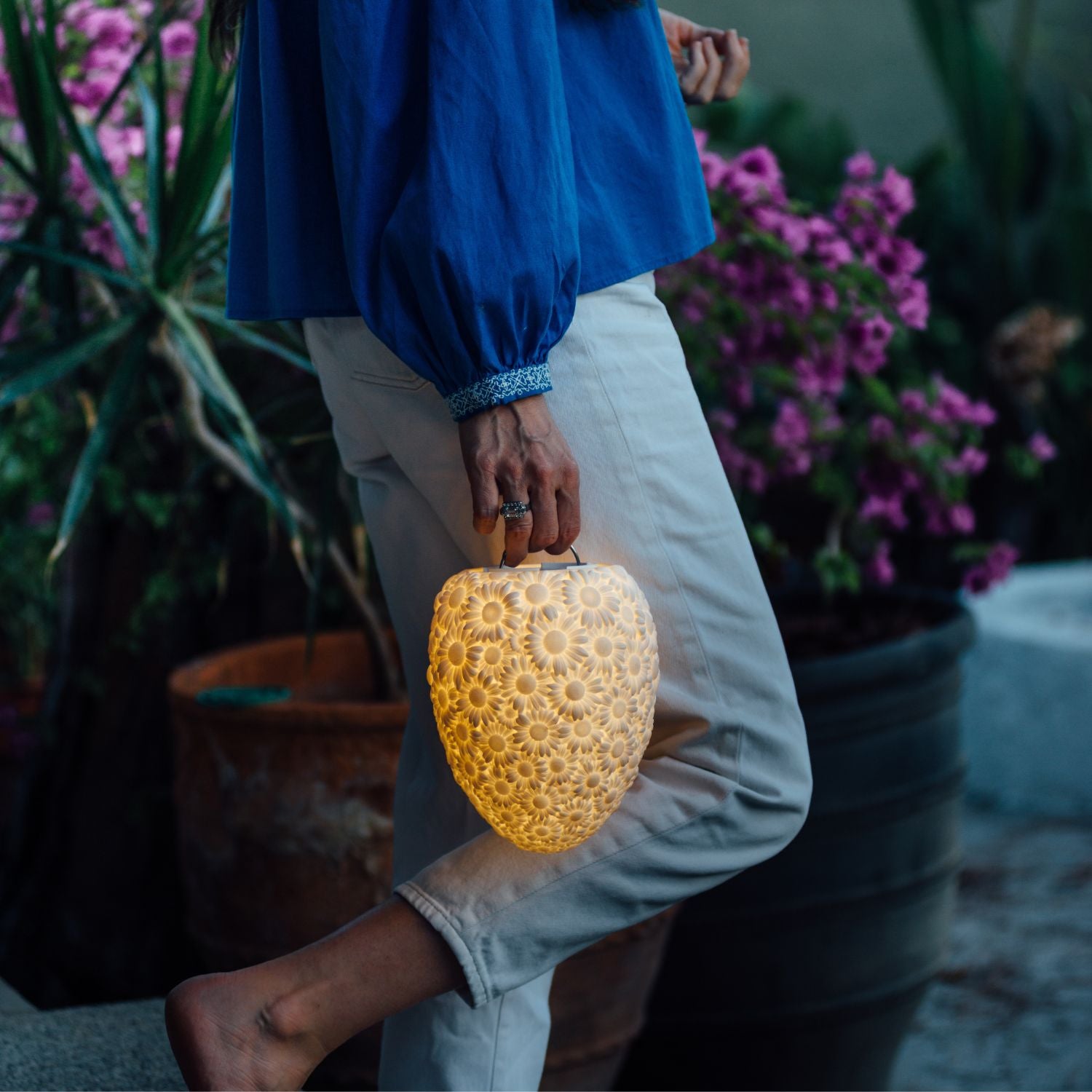 Die Daisy Lampe™ ist ein vielseitiger Begleiter, der sowohl drinnen als auch draußen für einzigartige Lichtmomente sorgt. Mit ihrer robusten Bauweise, ihrer zuverlässigen Akku-LED-Technik und ihrer praktischen Fernbedienung ist sie die ideale Wahl für alle, die ein zauberhaftes Ambiente schätzen.