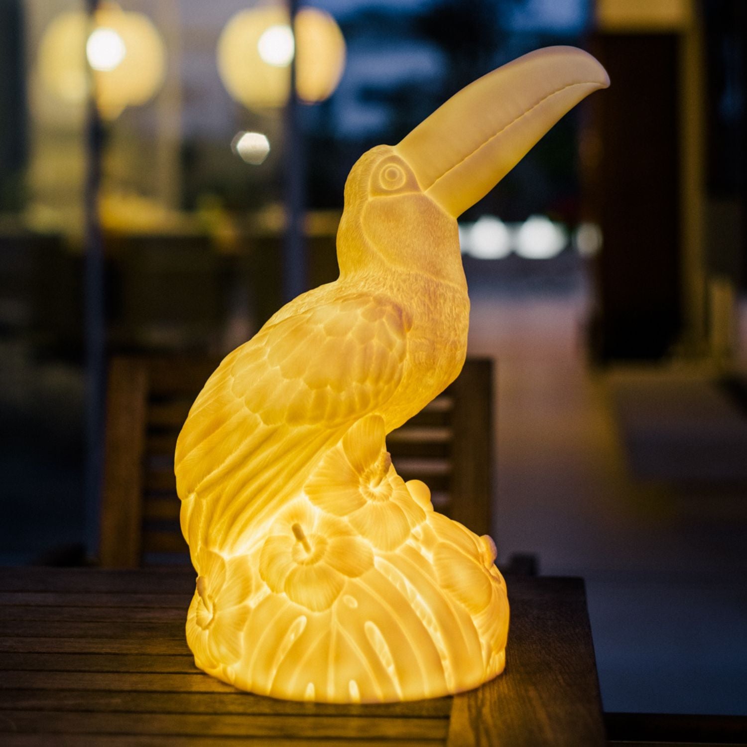 Die Eden Lampe™ ist ein vielseitiger Begleiter, der sowohl drinnen als auch draußen seinen Platz findet. Mit einer Höhe von 45cm erzeugt der Tukan ein exotisches Flair in Ihrer Umgebung. Die integrierte USB-aufladbare Batterie liefert bis zu 8 Stunden bukolische Glückseligkeit, sei es auf dem Nachttisch oder im Garten. Bitte beachten Sie, dass bukolische Glückseligkeit ein erhöhtes Wohlbefinden hervorrufen kann. Wir empfehlen, Ihre Eden Lampe verantwortungsbewusst zu nutzen.